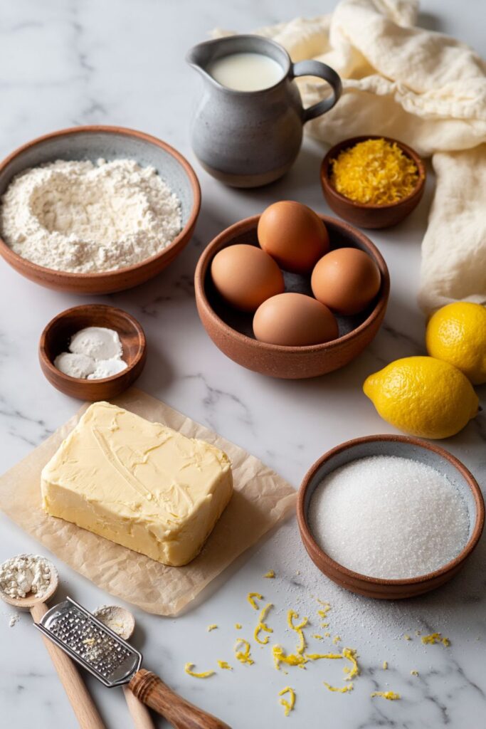 - 2. Mix the Batter: Beat the butter, caster sugar, self-raising flour, baking powder, eggs, milk, and lemon zest in a large bowl until smooth.