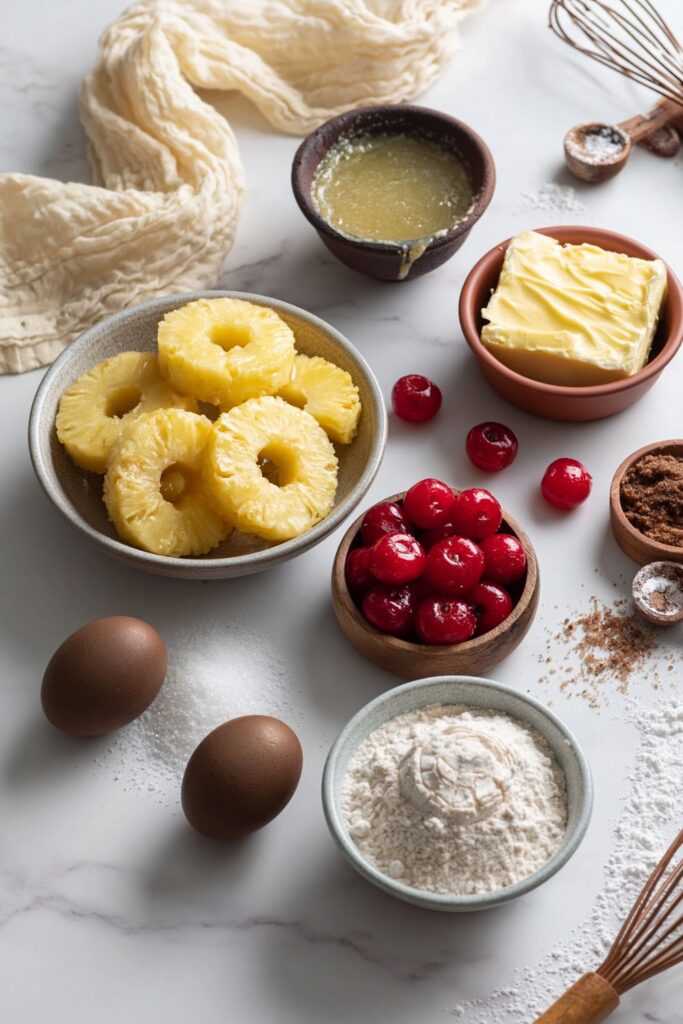 This soft, syrupy Mary Berry Upside Down Cake is made with tinned pineapple, glacé cherries, and self-raising flour, ready in just under an hour. Tipping the warm cake out of the tin reveals a gleaming layer of fruit baked directly into caramelized brown sugar. I love watching the sponge soak up those sweet fruit juices as it cools.