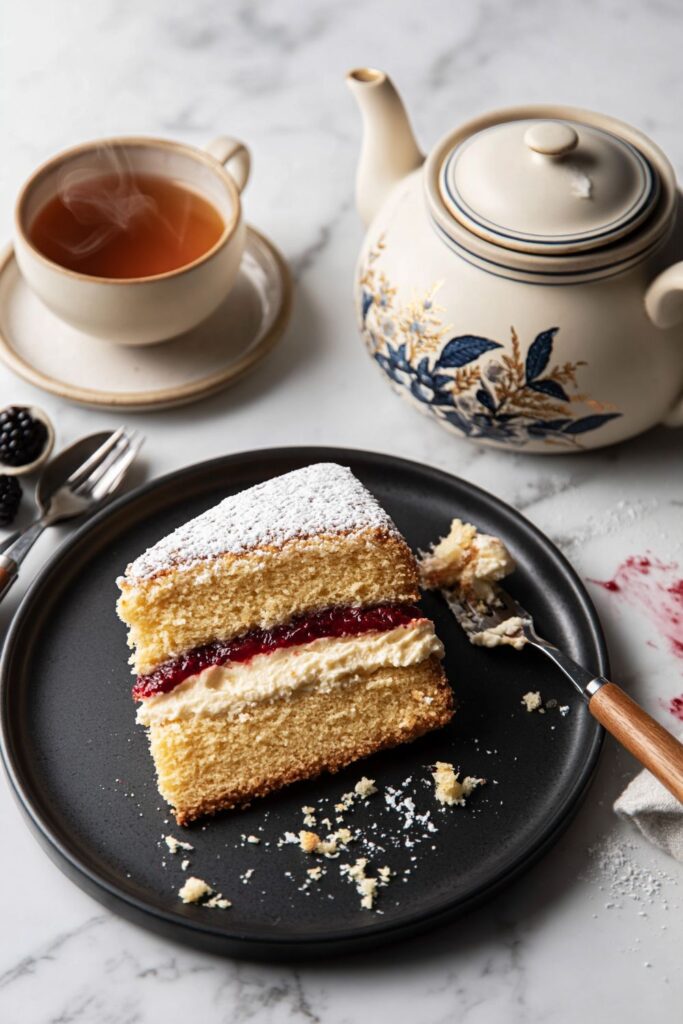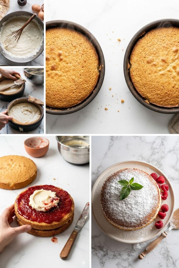 - 6. Assemble the cake: Spread the jam over one cooled sponge, top with the buttercream, and gently press the second sponge on top.