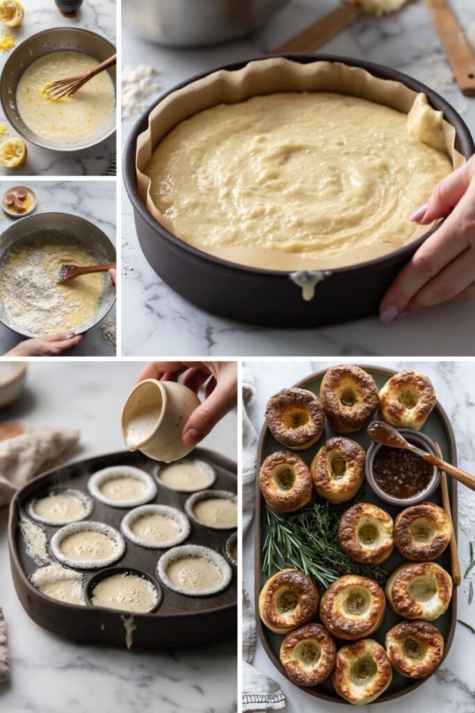 • Rest the batter: Resting allows the gluten to relax, which helps the puddings rise higher and creates a lighter texture.